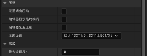 方法2:同样在细节面板中调整,更改压缩➡尺寸➡最大纹理尺寸。此方法可以自由的调整纹理的分辨率,不过由于分辨率格式问题,不建议调整成其他分辨率倍数,可能会导致适配问题。这里建议直接使用方法1