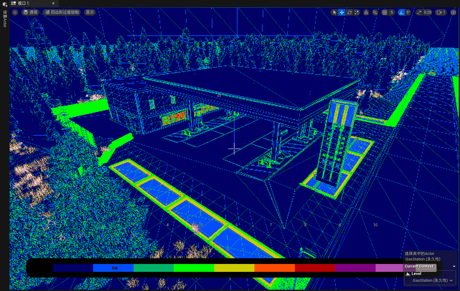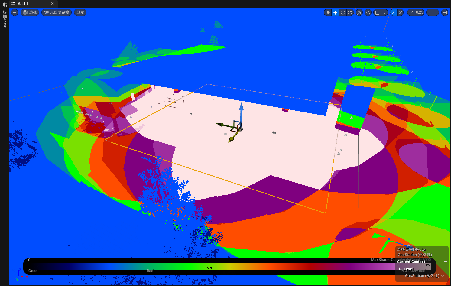 通过调用光照复杂度模式,来查看场景中的光照资源消耗。ue中使用颜色来区分性能开销
