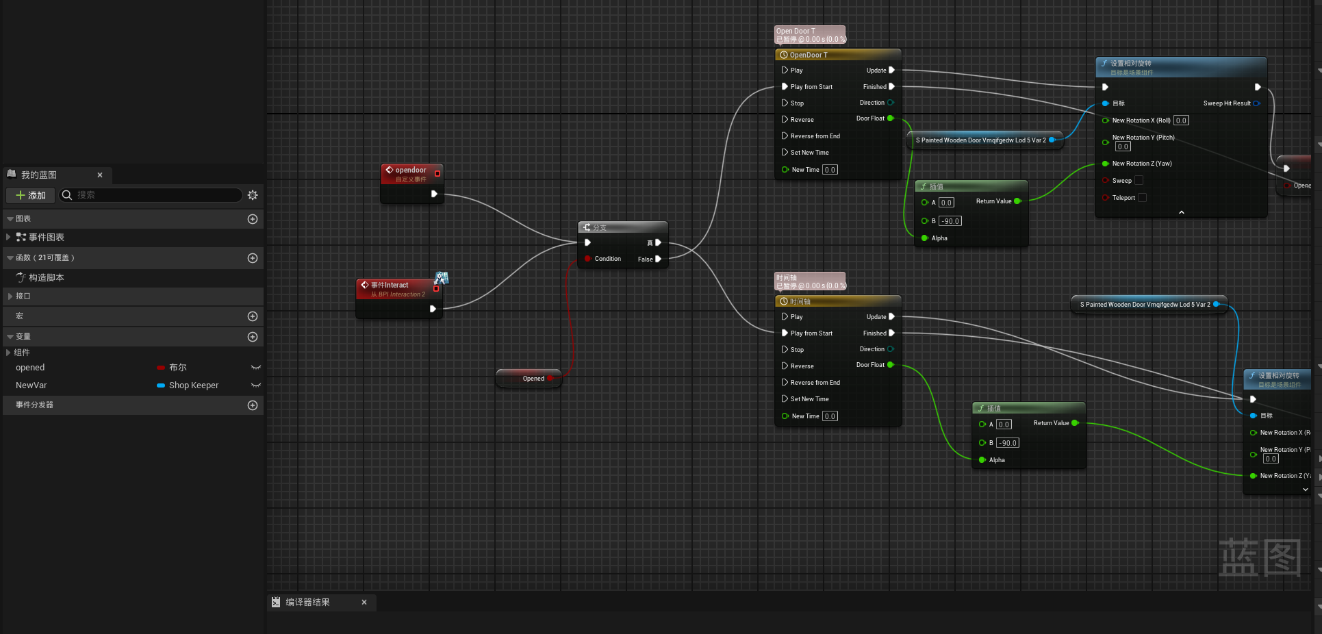 这是一个门的父类蓝图,即项目中所有门的父类,这意味这这个蓝图中的逻辑必须是所有门共有的(除非重载)。示例中是一个简单的开关门逻辑。