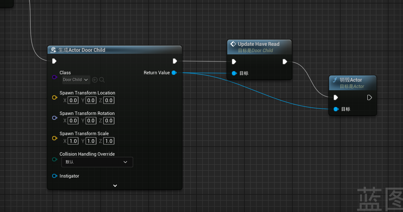 当我需要一个创建一个有额外逻辑的门时,例如这个门无法随意打开,则可以创建一个子类蓝图并且编写额外的逻辑。